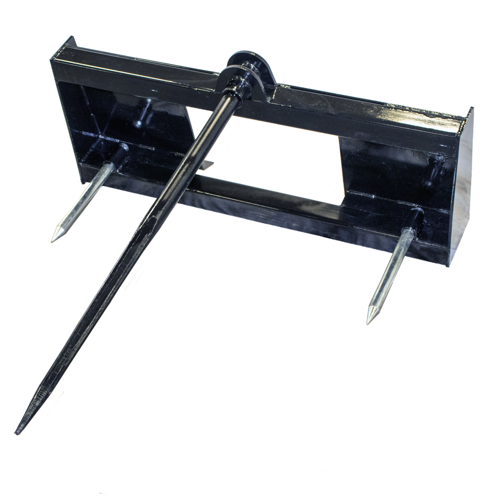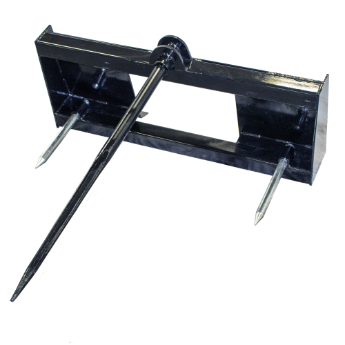 Prime’s 2-Prong Bale Spear for skid steer loaders has two spears located at the base of the attachment. This gives it the capability to lift large square bales as well as round ones.