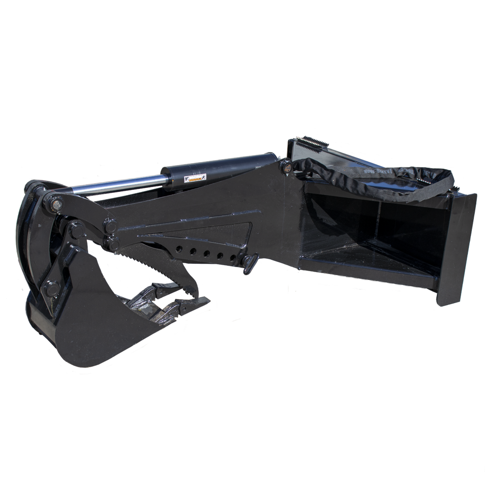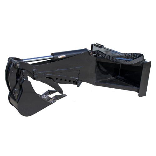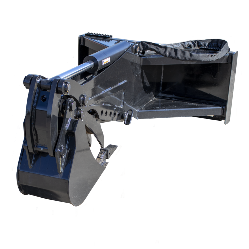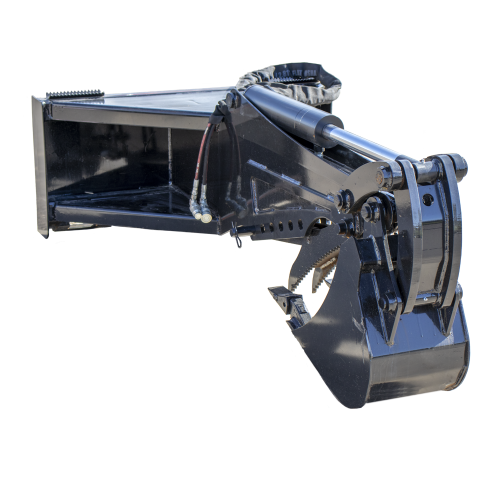 Each bucket comes with replaceable digging teeth. Both 6 1/2’ & 8 1/2′ Backhoes are available, with a capability of digging 6 1/2′ & 8 1/2′ deep respectively. We protect the cylinder and fittings by placing the cylinder upside down in the frame. All of the pivot gussets are fabricated with 1” Grade 50 hardened steel. We offer an optional mechanical thumb for gripping debris, allowing you to complete your job quicker.