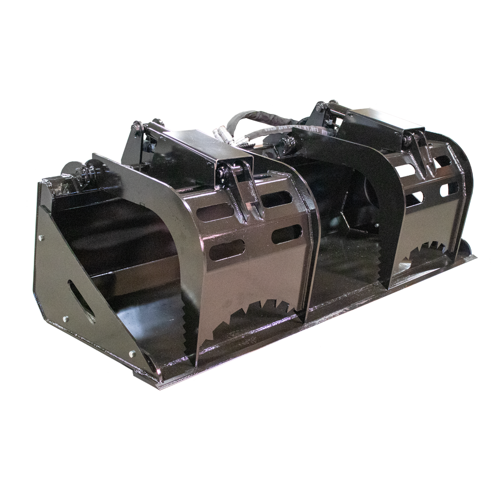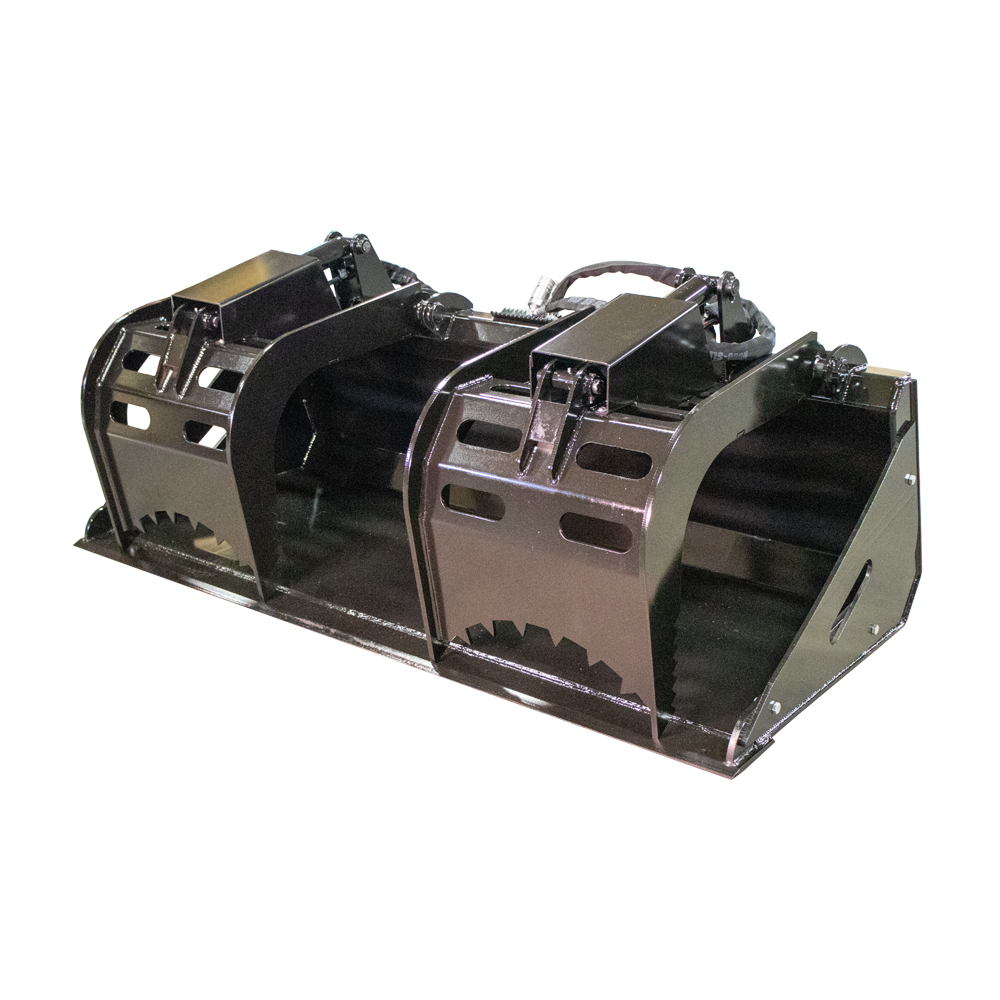 The Prime Dirt Bucket Grapple is the perfect attachment to use when you want to pick up a large amount of debris and contain it inside of the bucket, leaving no debris behind.