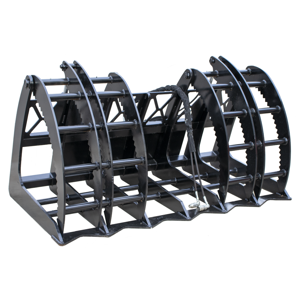 The bottom of the grapple’s bucket is built with ¾” Grade 50 steel. Both the cutting edge and the massive top grapples are made with ½” Grade 50 steel. There is approximately 12” of space between the bucket tines and there are serrated teeth on the grapples for added grip. This grapple is capable of holding an immense amount of debris.