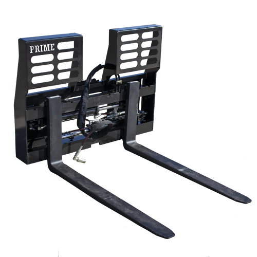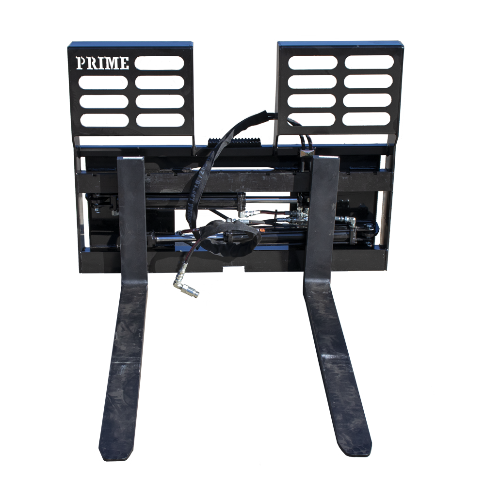 The Prime Attachments Hydraulic Sliding Pallet Fork is made to outlast others on the market. These forks work well for situations where you have inconsistent pallet sizes or placements since you are able to adjust each fork individually using hydraulics.