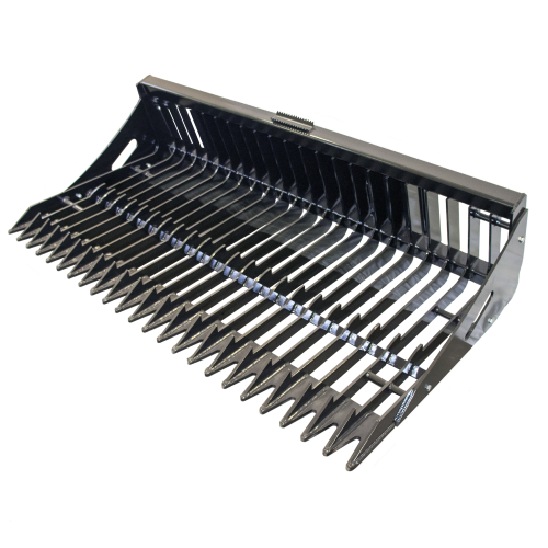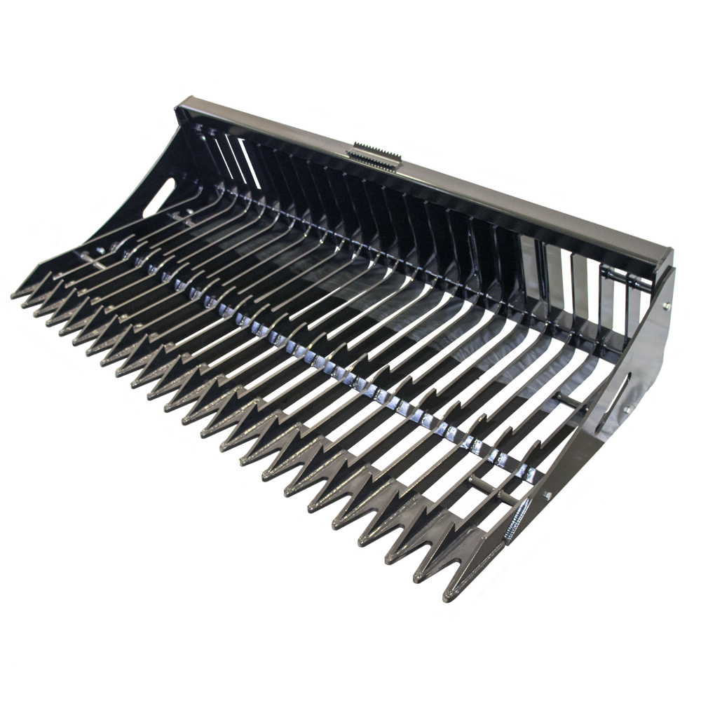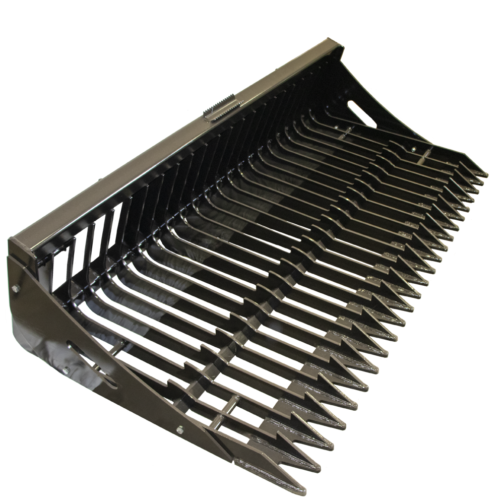 The bucket’s tines are spaced 3” apart, allowing the user to remove both small and large objects, shortening the time needed to complete your project. This attachment does not utilize a grapple. If you need a grapple to clamp onto the object you are moving, check out our Rock & Brush Grapple.