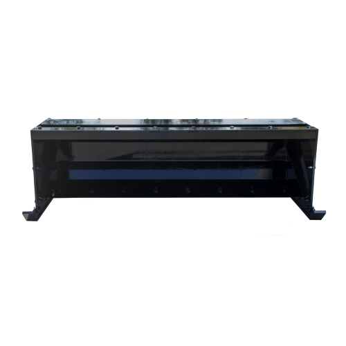 It comes with a 1/2” adjustable and replaceable cutting edge, as well as 1” replaceable Grade 50 steel shoes. It is built for a beating! We also do the extra material bend in our larger press brake to gain HUGE volume over our competitors (see photos).