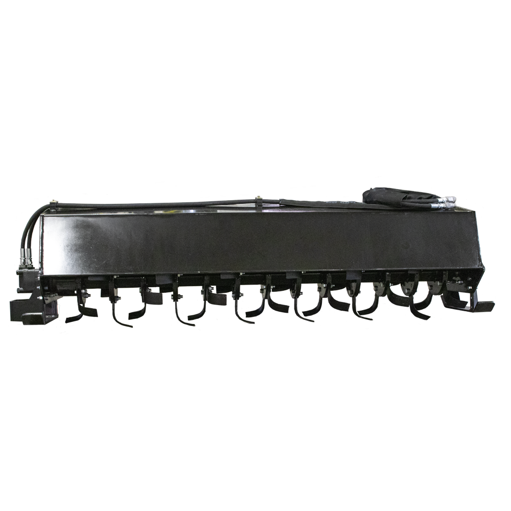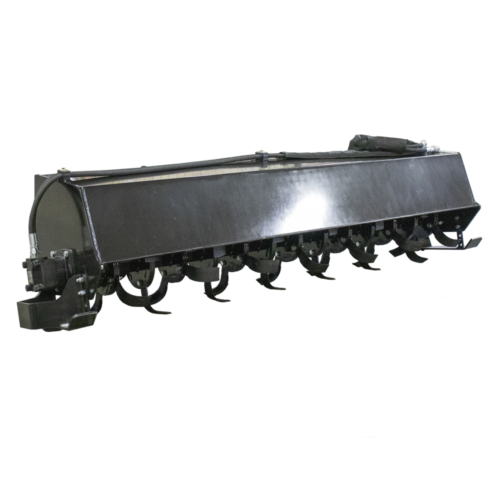 The bidirectional motor saves you time and labor due to its ability to rotate the tines backward or forwards, allowing you to pulverize the soil in one single pass without disturbing the soil a second time. The adjustable shoes make the Prime Tiller very versatile in a lot of applications, as they allow you to quickly set the digging depth. This tiller has the capacity to till 6″ deep. It operates on standard flow (15-24 gallons per minute). The Prime Tiller is available in 5’, 6’ & 7’ lengths.